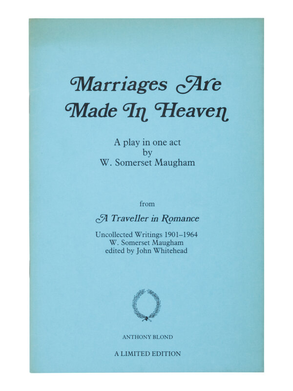 Plays. London: William Heinemann, 1931. 6 volumes. In dust jackets; The Breadwinner. Garden City, NY: Doubleday, Doran, & Company, 1931; For Services Rendered. London: William Heinemann, 1932; Sheppey. London: William Heinemann, 1933; Souvenir Programme of the Matinee organised by The Daily Telegraph as a tribute to Miss Marie Tempest on the occasion of her Jubilee. London: Suttley & Silverlock, 1935; Trio. London: William Heinemann, 1950; Encore. London: William Heinemann, 1951; The Noble Spaniard. London: Evans Brothers, 1953; And others.