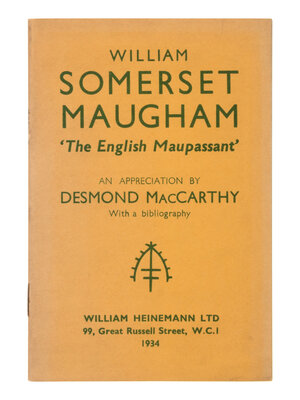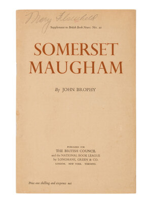 Adrian, Jack (ed). The Ash-Tree Press Annual Macabre 1998. Ashcroft, BC: Ash-Tree Press, 1998; Brophy, John. Somerset Maugham. London: Published for the British Council and The National Book League by Longmans, Green, & Co., 1958; Cordell, Richard A. W. Somerset Maugham. Toronto: Thomas Nelson & Sons, 1937; Costa, Richard Hauer. An Appointment with Somerset Maugham and Other Literary Encounters. College Station, TX: Texas A & M Press, 1994; Fisher, Richard B. Syrie Maugham. Dallas: Duckworth, 1978; Hastings, Selina. The Secret Lives of Somerset Maugham. York: Random House, 2010; Holden, Philip. Orienting Masculinity, Orienting Nation: W. Somerset Maugham's Exotic Fiction. Westport, CT: Greenwood Press, 1996; Jonas, Klaus W. The Maugham Enigma. London: Peter Owen Limited, 1954. Inscribed by Jonas; Masters, Anthony. Literary Agents: The Novelist as Spy. Oxford: Basil Blackwell Ltd., 1987; Maugham, Robin. Conversations with Willie: Recollections of W. Somerset Maugham. London: W.H. Allen, 1978; McKnight, Gerald. The Scandal of Syrie Maugham. London: W.H. Allen, 1980; RAPHAEL, Frederic. Somerset Maugham. [London]: Cardinal, 1989; Rogal, Samuel J. A Companion to the Characters in the Fiction and Drama of W. Somerset Maugham. Westport, CT: Greenwood Press, 1996; ROTHSCHILD, Loren R. (ed.). The Letters of William Somerset Maugham to Lady Juliet Duff. Pacific Palisades, CA: Rasselas Press, 1982. Limited edition, letter "S" of 26 lettered copies. Signed by Rothschild and printer Patrick Reagh; Nelson Doubleday: 1889-1949. [N.p.]: Privately Printed, 1949.
