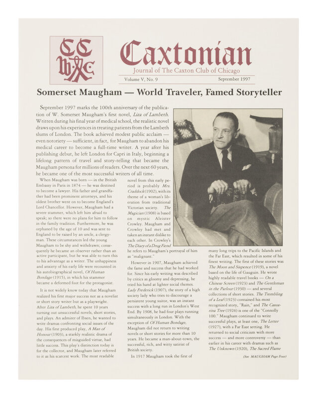 The present archive is comprised of numerous reference books, magazines, and other miscellaneous publications related to the life and work of W. Somerset Maugham, including:
