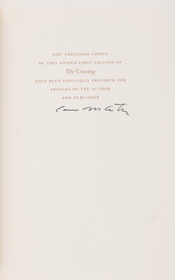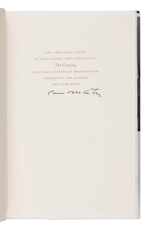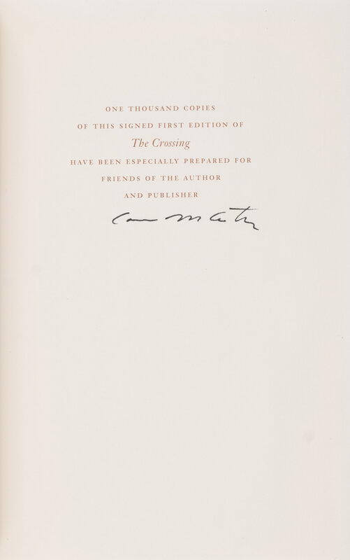 New York: Alfred A. Knopf, 1994. First and limited edition, one of 1,000 copies signed by McCarthy. 8vo. Original black cloth; publisher's dust jacket.