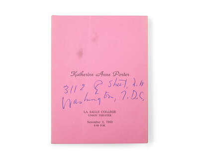 Together with two copies of a printed pamphlet for a speech by Porter at La Salle College on November 2, 1960 laid-in, one with an address in manuscript on front wrapper, presumably in Porter's hand.