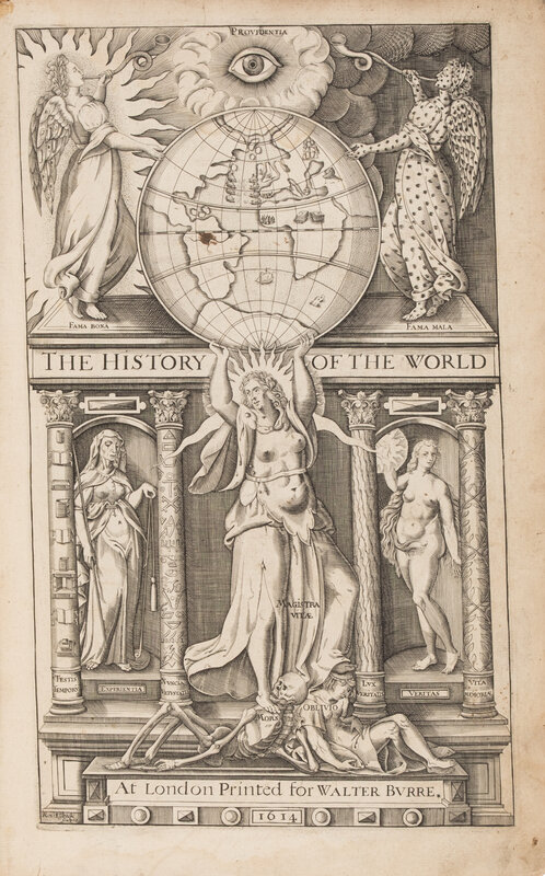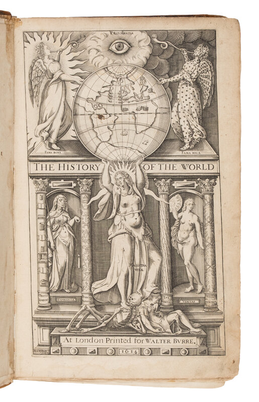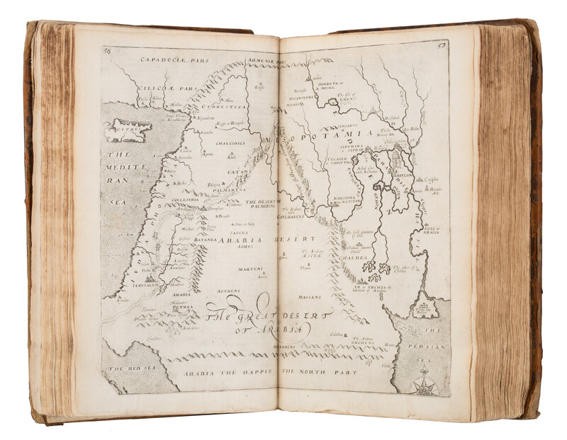 London: Printed by William Jaggard for Walter Burre, 1621. Folio (330 x 210 mm). Frontispiece with engraved title and 8 double-page maps and plans, occasional markings throughout, occasional minor corner losses, some very light spotting throughout, frontispiece and engraved title reinforced. Contemporary full calf with spine in 7 panels and 6 raised bands, rear board detached, significant wear to joints resulting in loss, rubbing, spine ends rubbed away; bookplates of Henry Hunter, Esq, and Hoyt H. Hudson (gift to Princeton University).