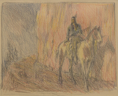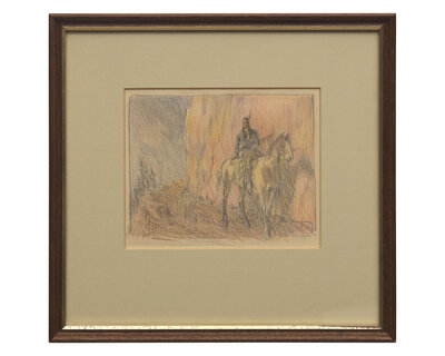 No place, no date. Colored pencil on paper, attributed to Frank Reynolds. Approximately 5 1/4 x 6 1/4 in. (133 x 159 mm) (sight). Typed label on back of frame, "ex-collection of his daughter". In mat and unexamined out of frame, 10 1/4 x 10 1/4 in. (260 x 260 mm).
