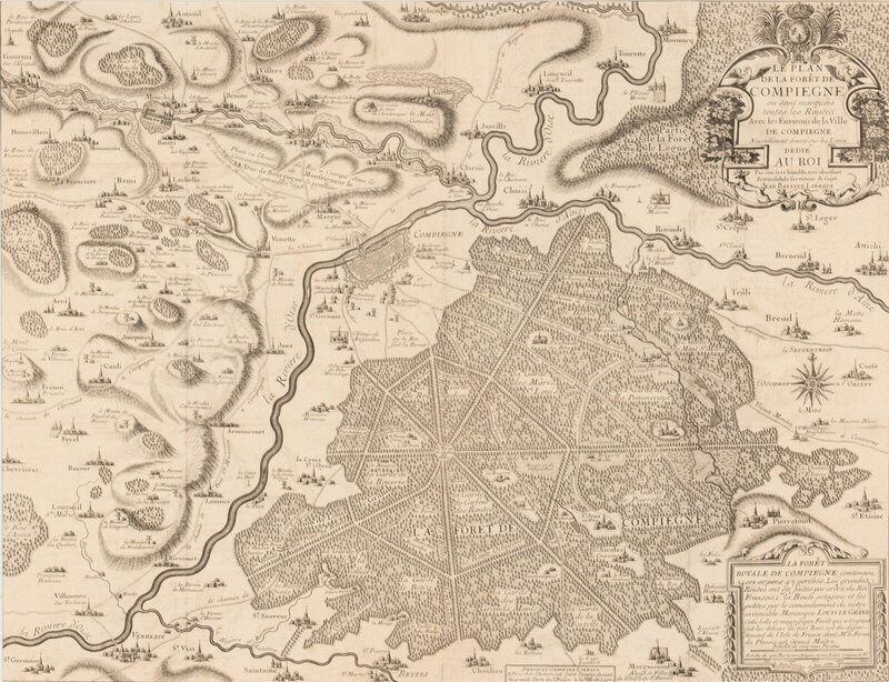 LIEBAUX, Jean-Baptiste. Le Plan de la Foret de Compiegne. Paris, 1772. And 3 others. Together, 7 engraved maps, all framed.