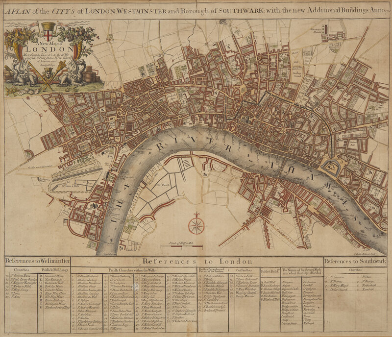 [Maps & Atlases] Senex, John. A Plan of the City's of London, Westminster and Borough of Southwark; with the new Additional Buildings: Anno 1720