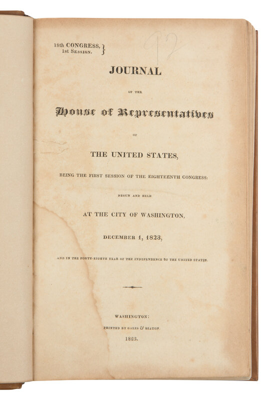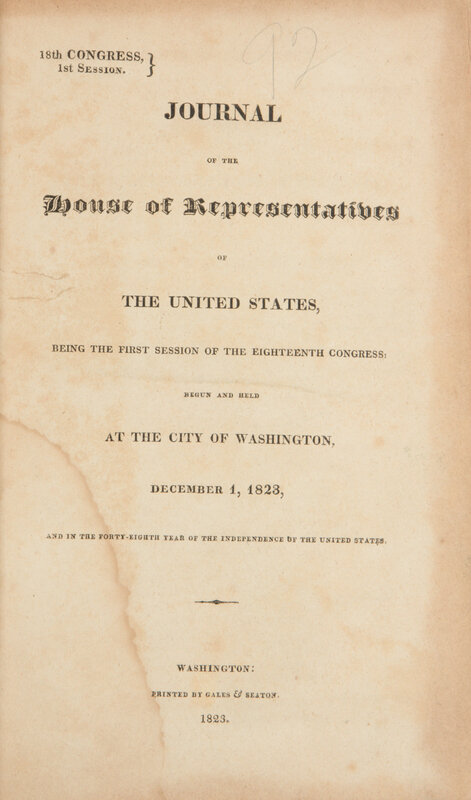[Americana] Journal of the House of Representatives of the United States, being the first session of the Eighteenth Congress...December 1, 1823...