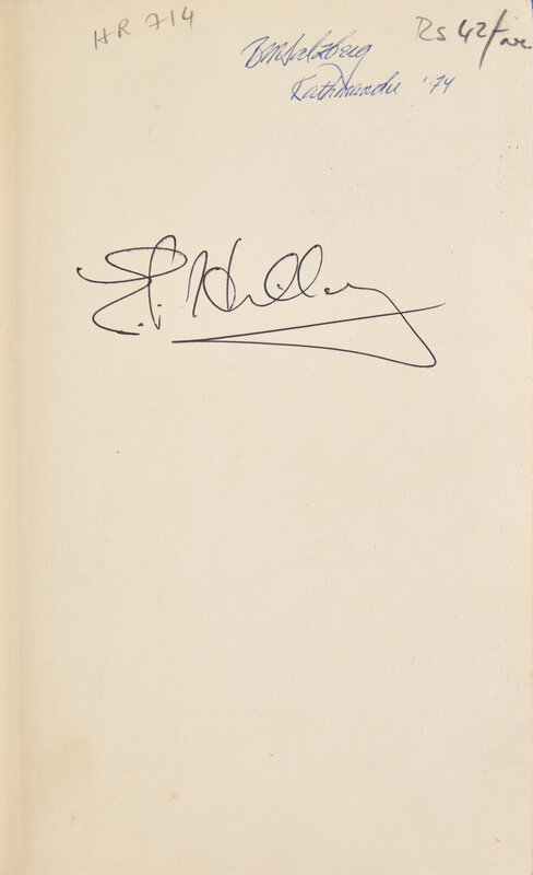 London: Faber and Faber, (1958). First edition. 8vo. 146 pp. Signed on front free endpaper by Sir Edmund Hillary. Blue cloth, spine stamped in gilt; boards soiled; later ownership signature on front free endpaper; in original printed dust-jacket, worn, loss to extremities.