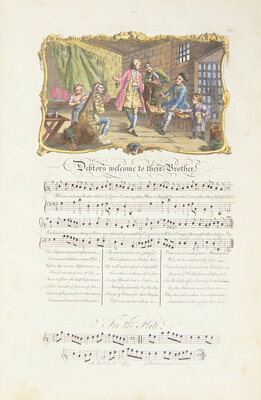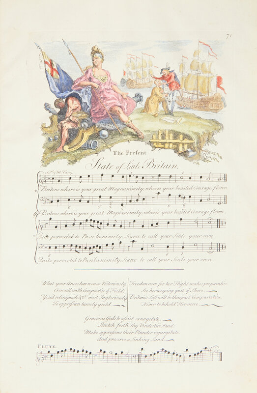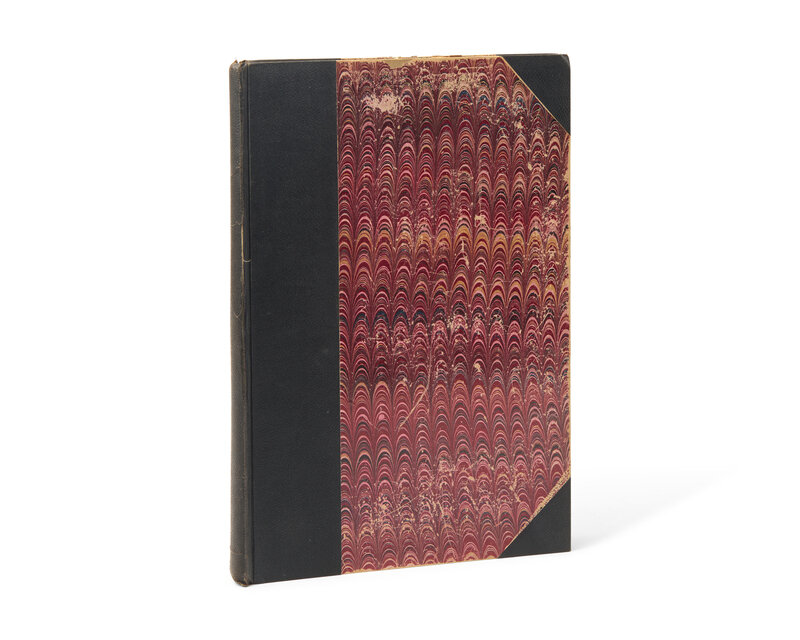 (London): Printed for C. Corbett, (ca. 1737 or later). Vol. II only (of two). Second issue (with composer listed as Porpora in plate 14). Folio. Illustrated with engraved vignette title-page, engraved Table, and 98 (of 100) hand-colored engraved number plates of musical scores; lacking plates 19 and 58. Three-quarter black pebbled cloth over marbled paper-covered boards, boards scuffed and rubbed, spine split along rear joint, rubbing along extremities; all edges trimmed; bookseller's ticket in lower front paste-down; top and fore-edge of title-page repaired, affecting some image area, gutter of same repaired; numerous repaired closed tears along edges throughout (some affecting image area); soiling and spotting to most leaves. BUC p.107; Cohen-De Ricci 145-146