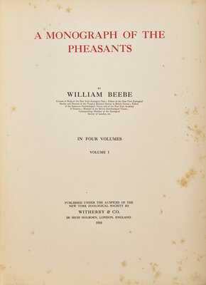 [Natural History] Beebe, William. A Monograph of the Pheasants