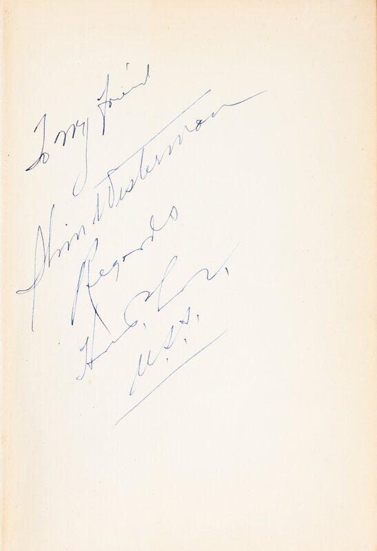 New Orleans: National Book Co., Inc. (1933). First edition. 8vo. 343 pp. Illustrated with 15 black and white half tone photographic plates. Presentation copy, inscribed on front free endpaper, "To my friend Slim Wisterman Regards Huey P. Long U.S.S." Publisher's orange cloth stamped in red and in black, boards soiled; scattered light foxing; in original dust-jacket, extremities lightly worn.
