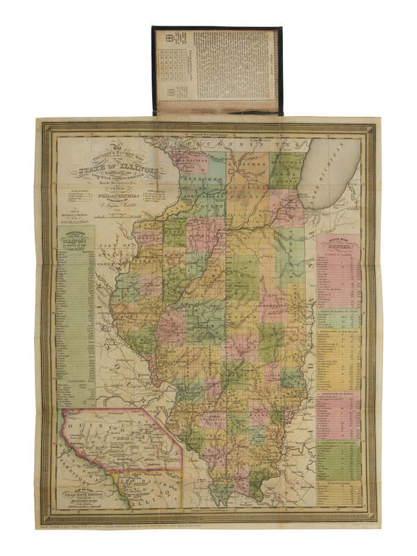 [Americana] Mitchell, Samuel Augustus. The Tourist’s Pocket Map of the State of Illinois Exhibiting its Internal Improvements, Roads, Distances &c.