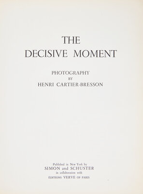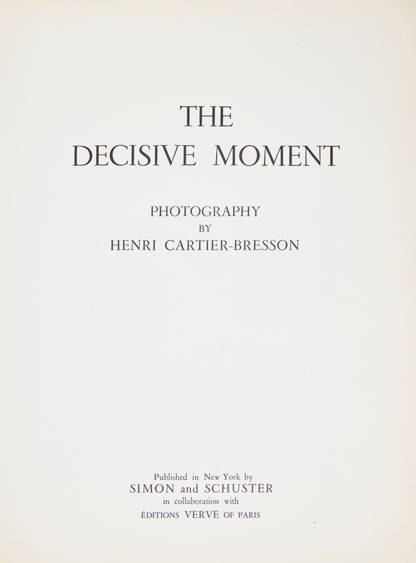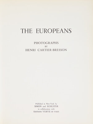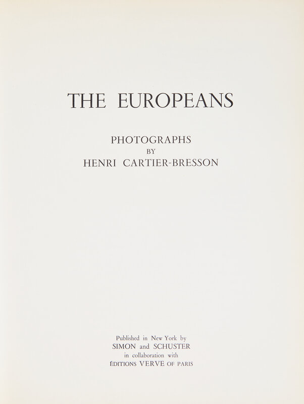 New York: Simon and Schuster, (1955). First edition in English, printed in France by Draeger. Folio. With the separate quarto leaflet printing the captions to the photographs in English laid in. Illustrated with photographic reproductions after Cartier-Bresson. Publisher's pictorial paper-covered boards, with a design after Joan Miro, light edge-wear.