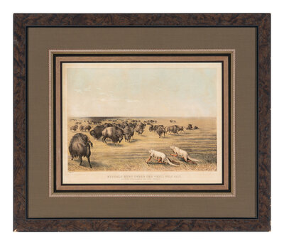 [Prints] Currier and Ives. Buffalo Hunt under the White Wolf Skin. An Indian Stratagem on the Level Prairie
