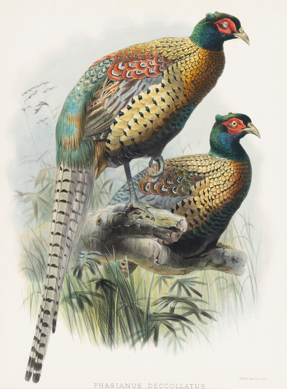 Lithograph with hand-coloring by C.F. Tholey after Elliot and J. Wolf, visible area 22 x 16 1/2", accompanied text leaf laid into pocket of frame, matted and framed (unexamined out of frame).