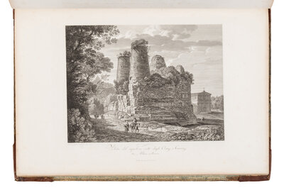 Rome, ca. 1816. Folio. 12 engravings and etchings; 5 additional engravings tipped in at end. Lacking title-page, text trimmed closed and laid down, spotting throughout. Contemporary half calf, rebacked, corners worn.