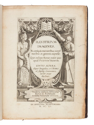 In Imagines... comprises a series of portraits engraved by Theodoor Galle which were based on the collection of coins, marbles, and gems previously owned by Italian humanist and archaeologist Fulvio Orsini; this collection was donated to the Vatican Library upon Orsini's death in 1600. Each portrait is accompanied by commentary by Johannes Faber detailing the object upon which each was based.