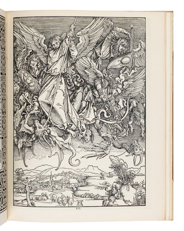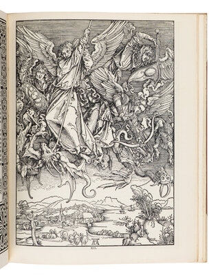 Detroit: Cranbrook Press, 1898. 4to. Limited edition, number 95 of 240 copies. 16 full-page illustrations after engravings by Albrecht Durer. Original half vellum gilt, calf lettering-piece gilt, label slightly chipped; book-plate of Calumet and Hecla Mining Company Public Library