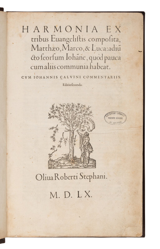 [Religion] Calvin, John. Harmonia ex Tribus Euangelistis Composita, Matthaeo, Marco, et Luca...