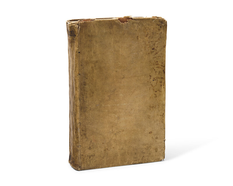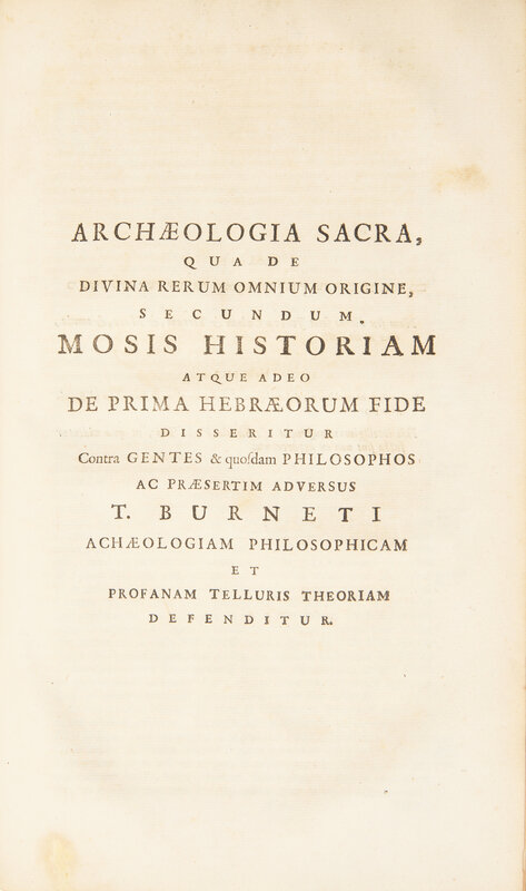 Amsterdam: Isaacum Stokmans, 1704. Two volumes in one. First edition. 4to. 702, 96 pp. Title-page printed in red and in black with engraved vignette. Text in Latin and in Hebrew. Full contemporary vellum, spine with manuscript title, boards soiled with loss to extremities, lower fore-edge of rear board perished; front gutter starting; paper loss at bottom fore-edge of title-page; ink stamp at bottom of title-page; scattered foxing to text.