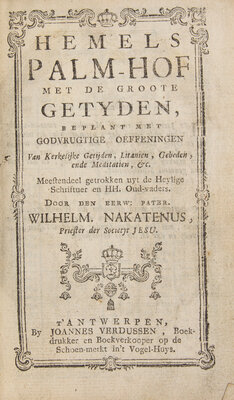 [Religion] Nakatenus, Wilhelm. Hemels Palm-Hof Met de Groote Getyden...