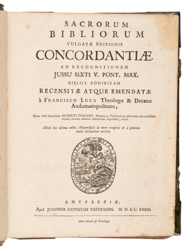 Amsterdam: Joannem Baptistam Verdussen, 1733. Large 4to (254 x 184 mm). Contemporary full blind-stamped pigskin over wooden boards with metal corner pieces and clasps, lacking ties, soiling, rubbing, partial vertical split to interior front board, head of spine rubbed away; some spotting throughout.