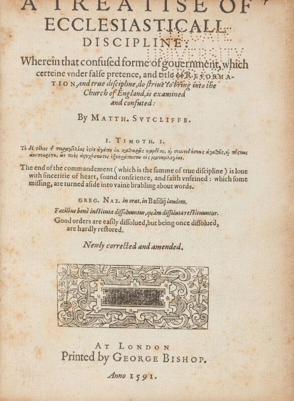 [Religion] Sutcliffe, Matthew. A Treatise of Ecclesiasticall Discipline