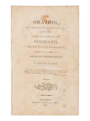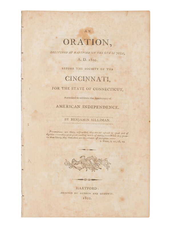 [Americana] Silliman, Benjamin. An Oration, Delivered at Hartford on the 6th of July, | A. D. 1802. Before the Society of the Cincinnati...