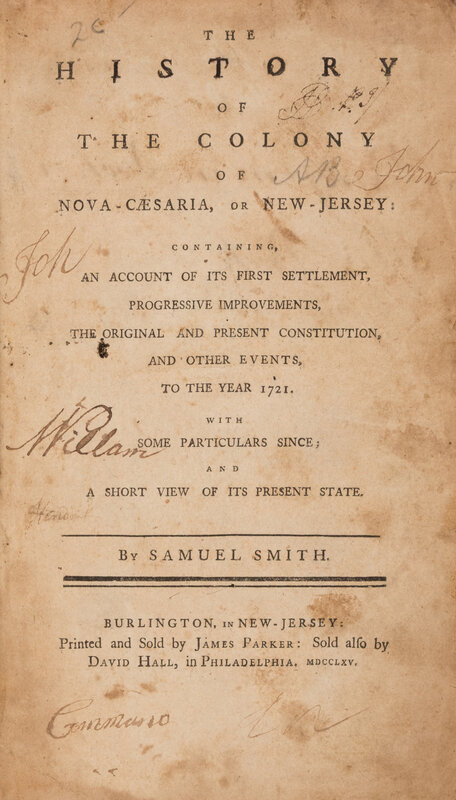 [Americana] Smith, Samuel. The History of the Colony of Nova-Caesaria, or New Jersey