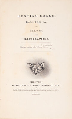 Warburton (1804-1891) was born of an aristocratic family, and known for renovating local churches and estates in his home village of Cheshire, most notably Arley Hall. He was an avid fox hunter, and member of the Tarpoley Hunt Club, of which he became President of in 1838. In 1834, he published this collection of hunting poems and songs, eventually running through eight editions.