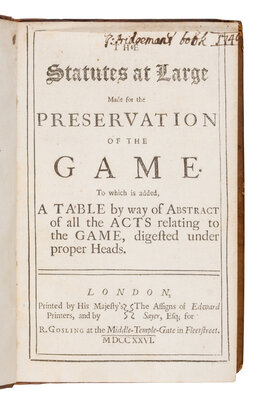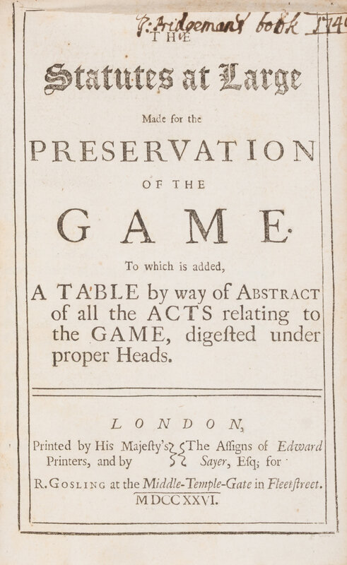 The Statutes at Large Made for the Preservation of the Game.