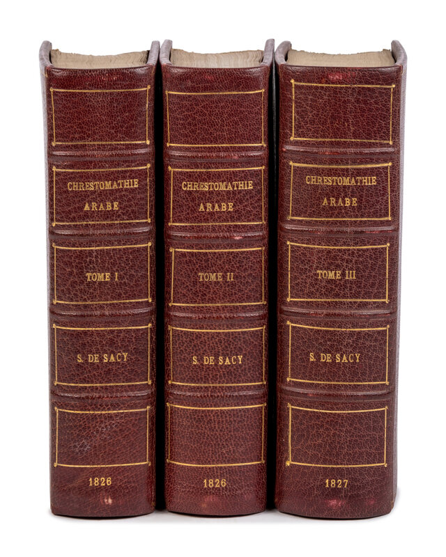 Paris, 1826-1827. Second corrected edition. 3 volumes, 8vo. Text in French and Arabic. Half-titles. Spotting and toning throughout, ownership signature on half-titles. Later red levant gilt, top edges gilt, others uncut.