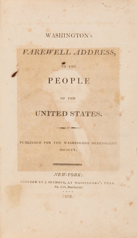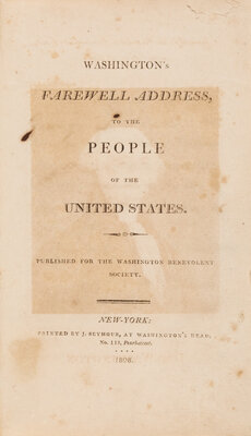 [Americana] Washington, George. Washington's Farewell Address, to the People of the United States. Published for the Washington Benevolent Society