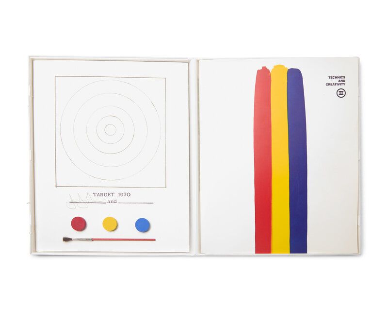 New York: (Gemini G.E.L. for) The Museum of Modern Art, (1971). First edition. With Jasper Johns' "Target" mounted in inner front lid (offset lithograph with facsimile signature, with three unused mounted circular watercolor cakes and paintbrush). 8vo booklet in original wrappers. Together in embossed plastic clamshell box, with foam liner, as issued.