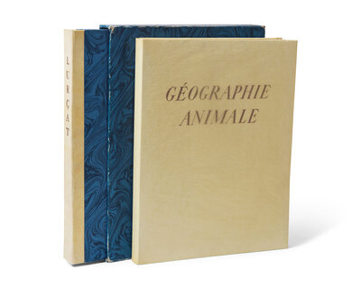 (Lausanne): Andre Gonin, (1948). First and limited edition, #142/280 numbered copies, signed in red crayon by Jean Lurcat and Andre Gonin. Folio. Illustrated with 18 color lithographs after Lurcrat. Gatherings loose as issued in publisher's stiff printed wrappers; in original glassine; in custom slip case and chemise.