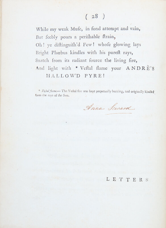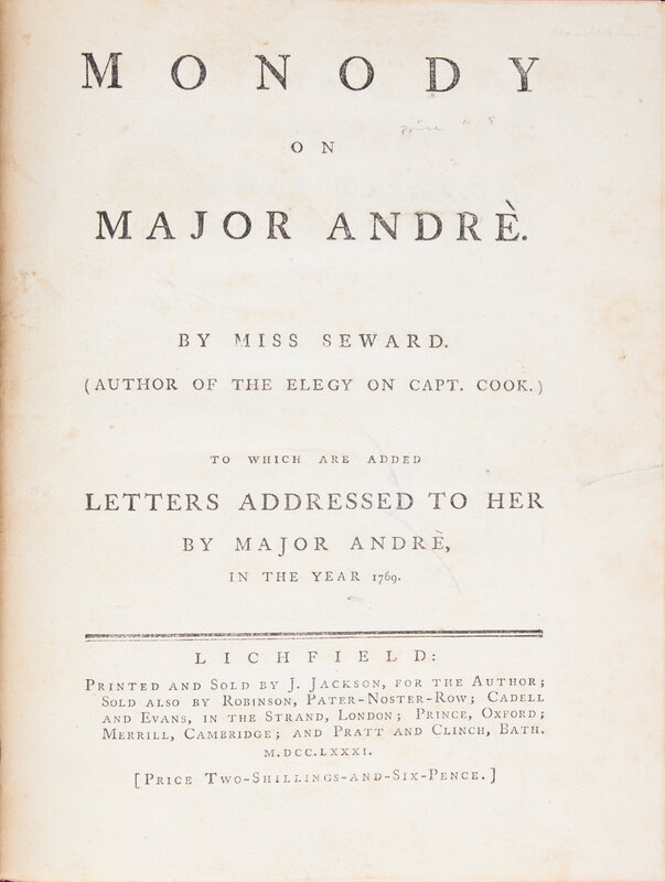 [American Revolution] Seward, Anna. Monody on Major Andre...To Which are Added Letters Addressed to her...