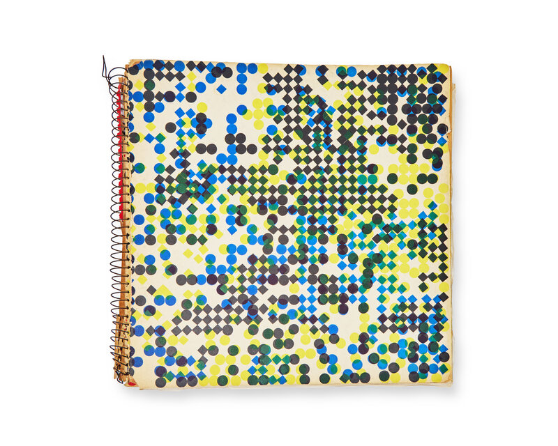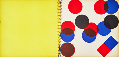 Reykjavik, Iceland: forlag ed, no date (presumably ca. 1957). First edition. 4to. Comprising 13 leaves (including wrappers) with multi-colored (yellow, green, blue, red, and black) circles and squares of varying sizes and configurations, printed on rectos only; versos printed in single colors (of same as above). Original spiral bound stiff wrappers, rear wrapper with printed title label, front and rear wrappers detached and split; wear and chipping along sheets edges; front wrapper split in two; large blank label on inner front wrapper; scattered soiling; library label on lower front wrapper.