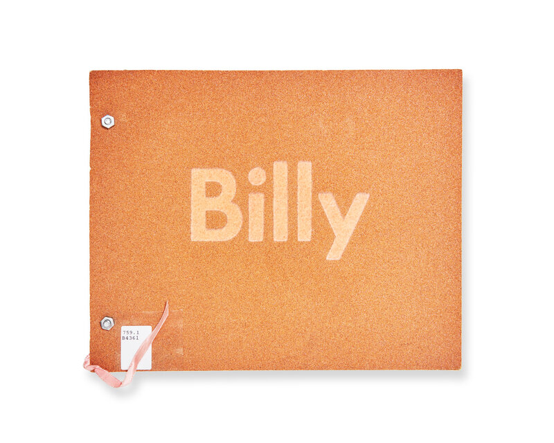 Los Angeles: Toyo Press for the Los Angeles County Museum of Art, (1968). First edition (one of 2,500 copies). Oblong 8vo. Original screw and hex nut-bound flocked sandpaper wrappers, felt lettering pieces on front wrapper, designed by Ed Ruscha, library label on lower front wrapper; original pink ribbon; library ink stamp on front blank transparent sheet; library ink stamp and mounted library labels on verso of final leaf; abrasion from removed label on inner rear wrapper.