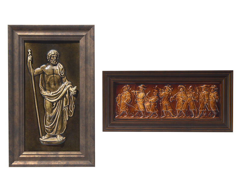 Two Framed Wedgwood Majolica Figural Relief Plaques
