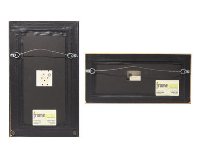 Height 14 3/4 x width 9 inches, the larger plaque, framed.