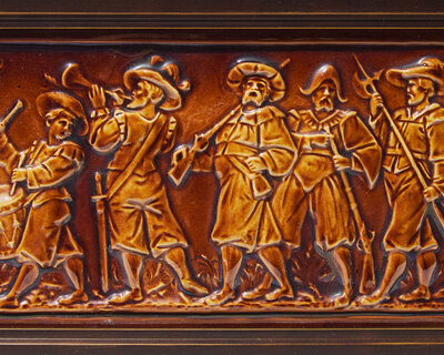 The larger depicting a classical Greek philosopher, the smaller depicting a Dutch military parade; impressed Wedgwood stamps.