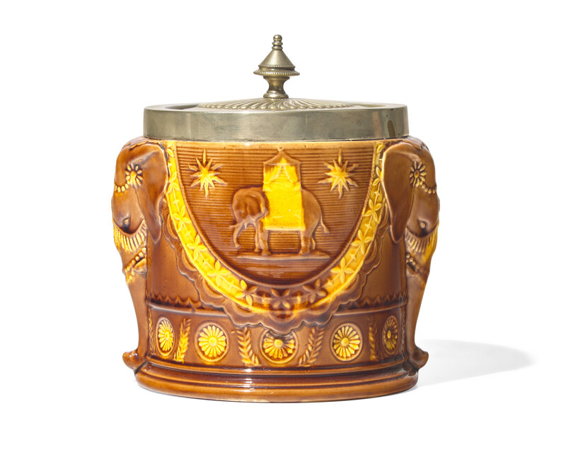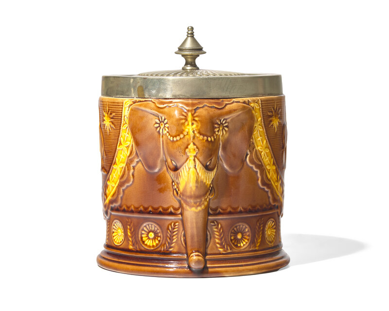 A Wedgwood Majolica Amber Elephant Tobacco Jar