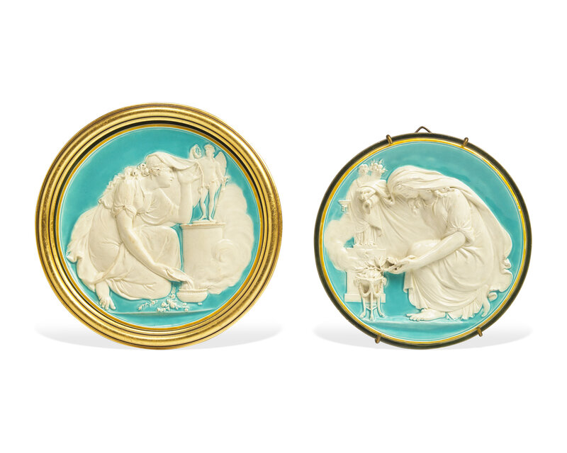 A Pair of Wedgwood Majolica Roundels depicting Vestal Virgins
