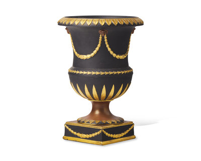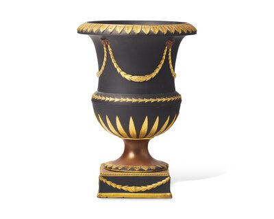 A Wedgwood Neoclassical Parcel-Gilt Basalt Urn