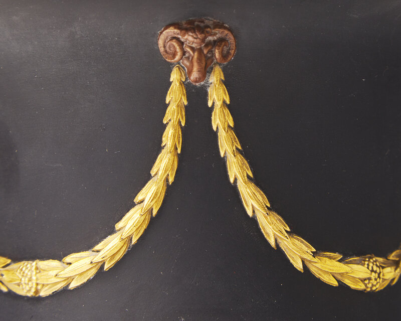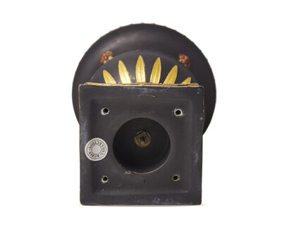 Black-ground with gilt leaf-tips and swags; impressed Wedgwood stamp.