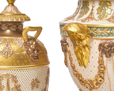 Two Wedgwood Queensware Parcel-Gilt and Bronzed Covered Vases