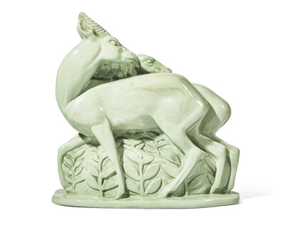 Shape no. 3439, two antelopes looking back over their shoulders; with impressed Wedgwood stamp.