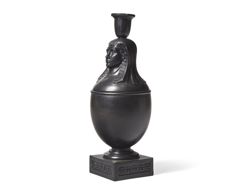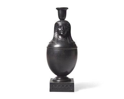 A Wedgwood & Bentley-Type Black Basalt Canopic Jar Candleholder