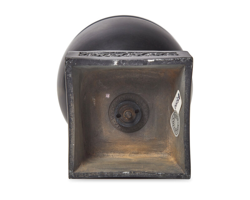 Modeled with a pharaoh's head atop an ovoid body; impressed Wedgwood & Bentley in circle around bolt-hole in foot.