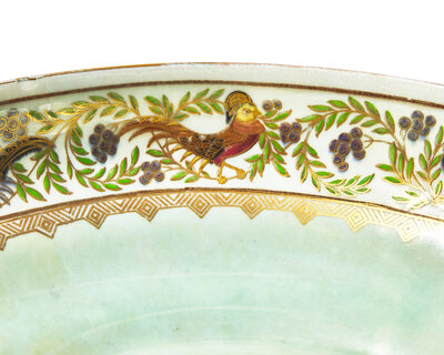 A Wedgwood Fairyland Lustre "Amherst Pheasant" and Pheasant's Eye" Pattern Fruit Bowl