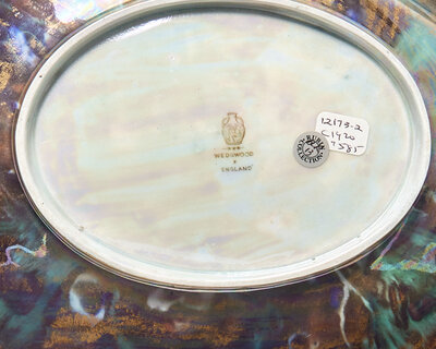 Stenciled interior depicting butterflies and fruiting branches, gold Wedgwood stamp to underside.